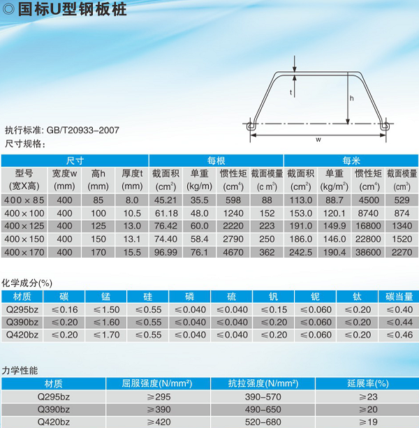 400系列熱軋U型鋼板樁